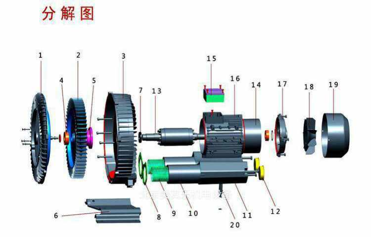 圖為旋渦氣泵分散爆炸明細(xì)